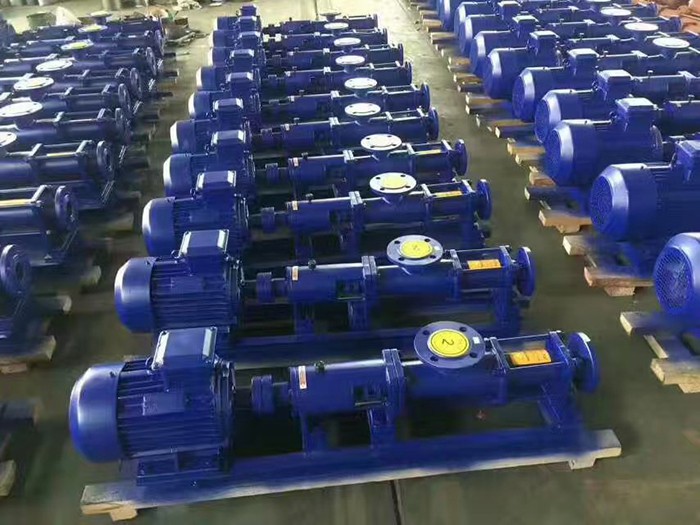 螺桿泵介質由軸向均勻推行流動。內部流速代低,容積保持不變。壓力穩定,因而不會產品渦流和攪動。每級泵的輸出壓力為0.6MPa—1.2MPa,揚程60m—120m(清水),自吸高度一般在3m以上。 因定子選用多種彈性材料制成,所以G型螺桿泵對高粘度達到80%流體的輸送和含有硬質懸浮顆粒介質或含有纖維介質的輸送,有一般泵種所不能勝任的特性。其流量與轉速成正比,廣泛應用于食品冶金、造紙、印染、化工、化肥制藥等工業部門使用。傳動可采用聯軸器直接傳動,或采用高速電機,三角帶,變速箱等裝置變速。